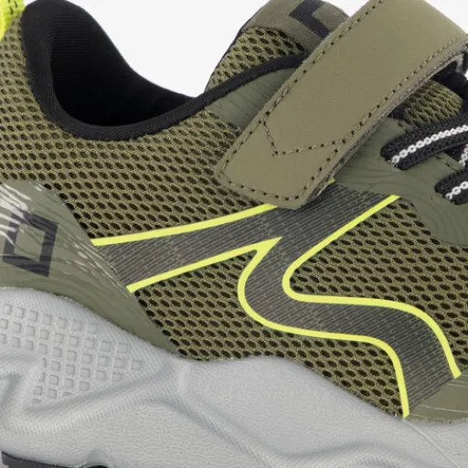 Groene sneakers voor jongens van Blue Box. Het buitenwerk is gemaakt van mesh en imitatieleer, het binnenwerk van textiel en de stevige zool met profiel is van rubber. Voorzien van elastische veters en een klittenbandsluiting voor een optimale pasvorm en hiellusjes voor een makkelijke instap. De sneakers hebben een grijs-zwarte buitenzool en op het buitenwerk zijn gele details aangebracht. Het comfortabele voetbed van textiel is niet uitneembaar.