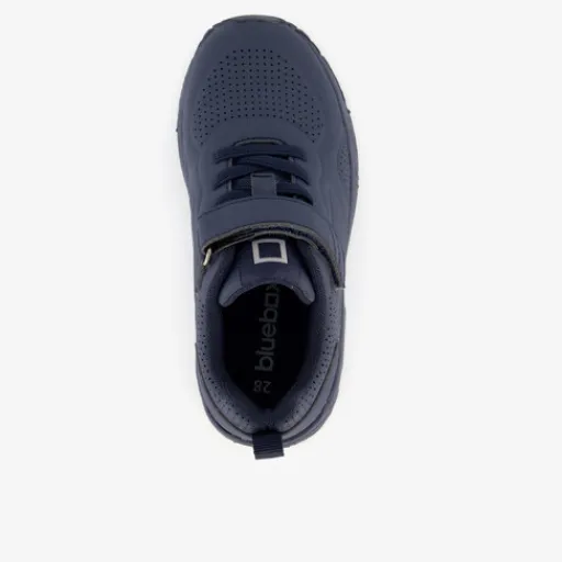 Donkerblauwe Blue Box sneakers met airzool voor jongens. Het bovenwerk is gemaakt van imitatieleer en is voorzien van perforatiegaten die voor extra ventilatie zorgen. Het binnenwerk is gemaakt van textiel en de stevige profielzool van rubber. De sneakers hebben airzolen die demping bieden en elastische veters met klittenbandsluiting voor een optimale pasvorm. Het comfortabele voetbed van textiel is niet uitneembaar.