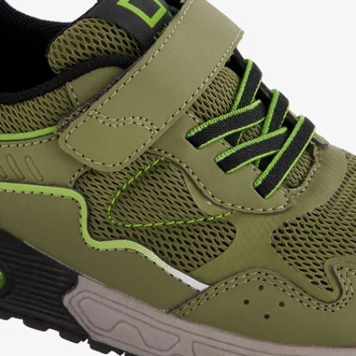 Groene sneakers met zwarte accenten voor jongens van Blue Box. Het buitenwerk is gemaakt van mesh en imitatieleer, het binnenwerk van textiel en de stevige profielzool met airzool is van rubber. De sneakers hebben elastische veters, een klittenbandsluiting, hiellusjes en een comfortabele voetbed van textiel. Deze is niet uitneembaar.