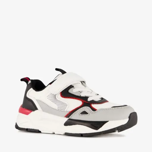 Zwart/witte sneakers voor jongens van Blue Box. Gemaakt van imitatieleer, een binnenwerk van textiel en een rubberen zool. De sneakers hebben elastische veters met klittenbandsluiting voor een makkelijke instap. Het vaste voetbed is gemaakt van textiel. De sneakers hebben een grove zool en rode accenten.