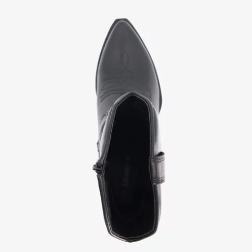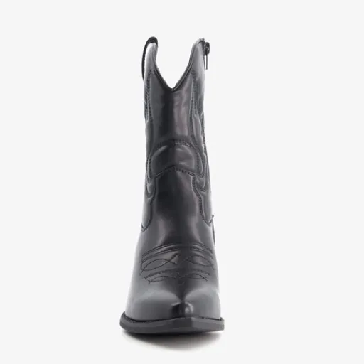 Zwarte western boots voor dames uit de Blue Box collectie. Het buitenwerk is gemaakt van imitatieleer, het binnenwerk van textiel en de buitenzool is van rubber. Voorzien van een ritssluiting aan de binnenzijde en aantreklusjes de bovenzijde. De boots hebben een blokhak van circa 5 cm en een schachthoogte van 21 cm. Binnenzool is niet uitneembaar.