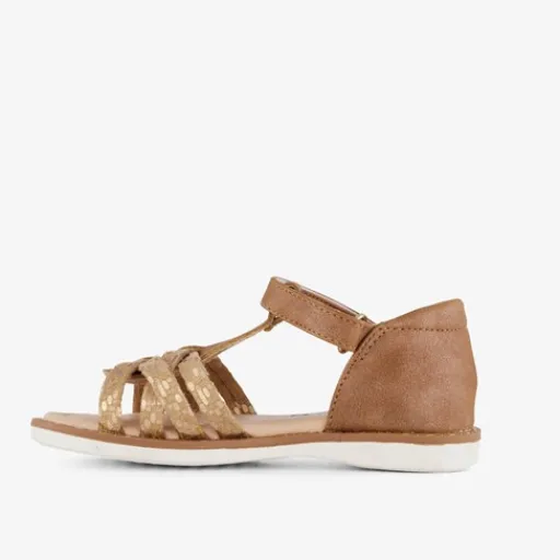 Bruine sandalen met goudkleurige details voor meisjes uit de Blue Box collectie. Gemaakt van imitatieleer met een witte profielzool van rubber. De sandalen hebben een klittenbandsluiting bij de enkel en meerdere banden over de tenen. Binnenzool is niet uitneembaar.