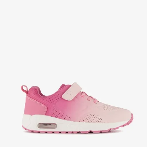 Roze sneakers voor meisjes. Gemaakt van imitatieleer, een binnenwerk van textiel en een rubberen airzool. De sneakers hebben elastische veters met klittenbandsluiting voor een makkelijke instap. Het vaste voetbed is gemaakt van textiel. Voorzien van faded kleurdetails op het bovenwerk en een witte airzool.