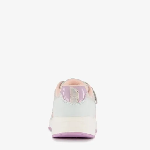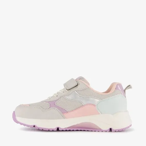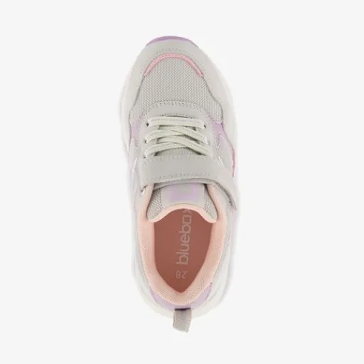 Grijze meisjes sneakers met pastel roze en pastel paarse accenten van Blue Box. Het buitenwerk is gemaakt van imitatieleer, het binnenwerk van textiel en de stevige zool met profiel is van rubber. De sneakers hebben elastische veters met klittenbandsluiting en een hiellusje voor een makkelijke instap. Het comfortabele voetbed van textiel is uitneembaar.