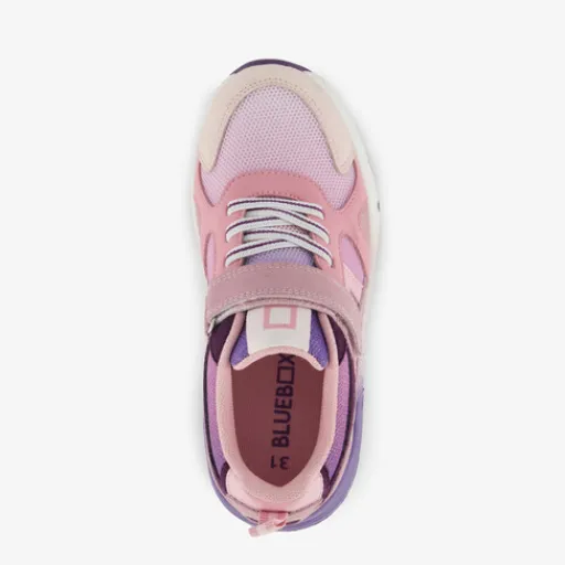 Paars-roze sneakers voor meisjes uit de Blue Box collectie. Het buitenwerk is gemaakt van textiel en imitatieleer, het binnenwerk van textiel en de stevige zool met profiel is van rubber. Voorzien van elastische veters en een klittenbandsluiting voor een optimale pasvorm en hiellusjes voor een makkelijke instap. De sneakers hebben een comfortabele binnenzool van textiel. Deze is niet uitneembaar.