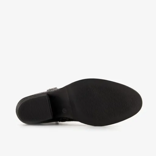 Grijze cowboylaarsjes voor dames van Blue Box. Gemaakt van imtatieleer, een binnenwerk van textiel en een rubberen zool. De laarsjes hebben een ritssluiting aan de binnenzijde en een vast voetbed van imitatieleer. Voorzien van metallic op het bovenwerk. De western laarsjes hebben een schachthoogte van 15 cm en een hak van 6 cm