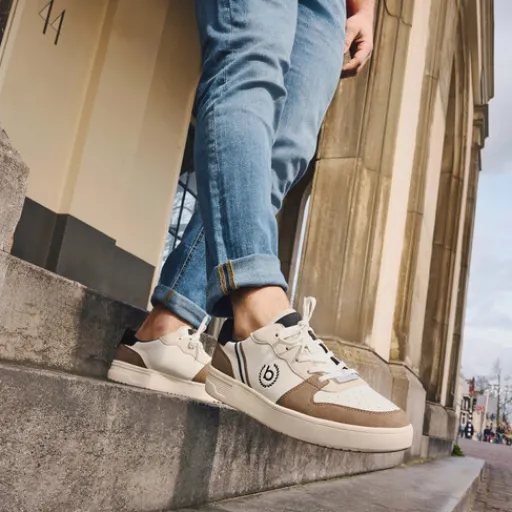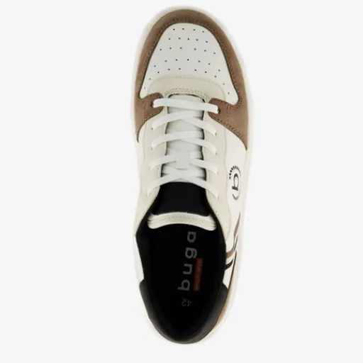 Beige Bugatti sneakers voor heren. Het buitenwerk is gemaakt van imitatieleer, het binnenwerk van textiel en de stevige zool met profiel is van rubber. Voorzien van een vetersluiting en perforatiegaatje bij de tenen. De comfortabele binnenzool bevat Soft Foam wat demping biedt. Deze is niet uitneembaar. Het bovenwerk wordt versierd met bruine en zwarte details en een merkopdruk aan de buitenzijde.