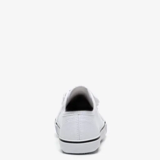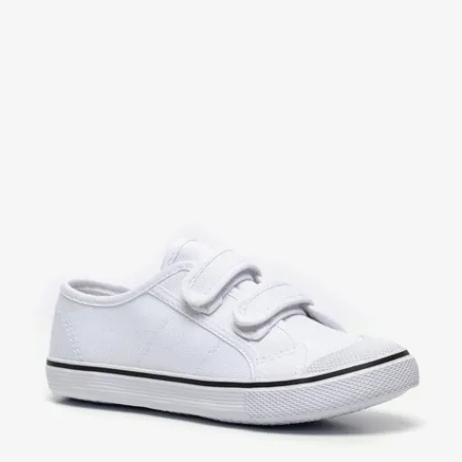 Witte gymschoenen voor jongens en meisjes. Gemaakt van textiel, een binnenwerk van textiel en een stevige antislipzool die uitglijden in de sportzaal voorkomt. De gymschoenen hebben twee klittenbandsluitingen voor een makkelijke instap en optimale pasvorm. De vaste binnenzool is gemaakt van textiel. Let op: het kan voorkomen dat je een gymschoen ontvangt met een andere merknaam. Echter is de schoen precies hetzelfde!