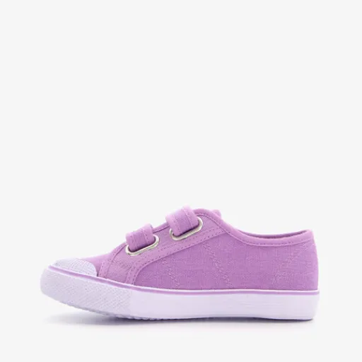 Paarse gymschoenen voor meisjes. Gemaakt van textiel, een binnenwerk van textiel en een stevige antislipzool die uitglijden in de sportzaal voorkomt. De gymschoenen hebben twee klittenbandsluitingen voor een makkelijke instap en optimale pasvorm. De vaste binnenzool is gemaakt van textiel.