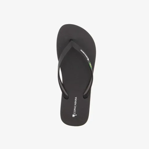 Zwarte vegan teenslippers voor dames uit de Copacabana collectie. Voorzien van een stevig teenbandje met merkopdrukken en een comfortabel voetbed. De duurzame teenslippers zijn gemaakt van 100% veganistisch en recyclebaar materiaal. Doordat er gebruik is gemaakt van hernieuwbaar materiaal kunnen de teenslippers van Copacabana talloze keren worden hergebruikt.ΒΆΒΆ