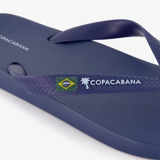 Blauwe teenslippers voor heren uit de Copacabana collectie. Voorzien van een stevig teenbandje met merkopdrukken en een comfortabel voetbed. De slippers zijn gemaakt van synthetisch materiaal.