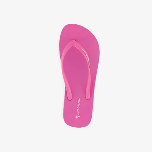 Roze vegan teenslippers voor dames en meisjes uit de Copacabana collectie. Voorzien van een stevig teenbandje met merkopdrukken en een comfortabel voetbed. De duurzame teenslippers zijn gemaakt van 100% veganistisch en recyclebaar materiaal.ΒΆΒΆ