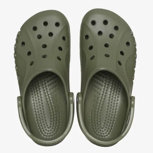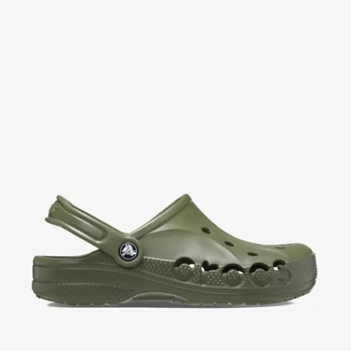 Groene Crocs™ Baya klompen voor heren, ideaal voor in huis én de tuin! Voorzien van een handige hielstrap voor een beter aansluitende pasvorm. Aan de zijkanten van de Crocs staan grote merklogo’s afgebeeld, en in de ventilatiegaten op de bovenzijde van de klompen kun je Jibbitz™ steken om je schoenen een persoonlijk tintje te geven! De Crocs™ Baya is vervaardigd uit het innovatieve croslite™-materiaal van Crocs, waardoor de klompen ergonomisch zijn. Het voetbed vormt zich naar je voet voor een perfecte pasvorm en een verbeterde ondersteuning van de voetboog. In het voetbed van de Crocs zitten massagenopjes voor een betere bloedsomloop, waardoor ze nóg comfortabeler zijn als je de hele dag op pad bent. Door de wijde pasvorm van deze klompen kunnen je voeten vrij buigen en uitzetten, waardoor vermoeidheid verminderd wordt.