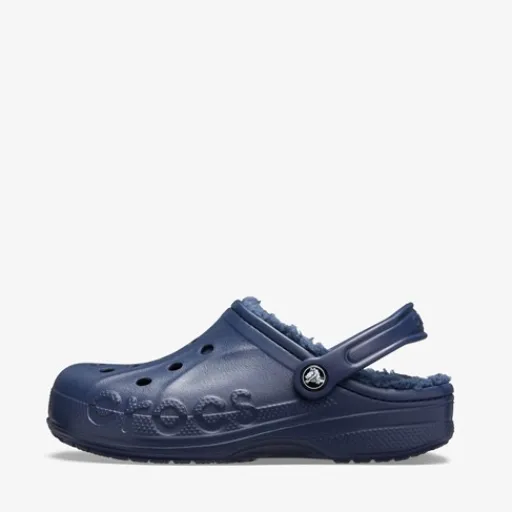 Blauwe Crocs™ Baya Lined klompen voor heren. Deze gevoerde Crocs zijn ideaal voor de koude wintermaanden! Aan de zijkanten van de Crocs staan grote merklogo’s afgebeeld, en in de ventilatiegaten op de bovenzijde van de klompen kun je Jibbitz™ steken om je schoenen een persoonlijk tintje te geven! De klompen zijn vervaardig doormiddel van de Dual Crocs Comfort™ technologie. Hierdoor kunnen de Baya Lined Crocs jouw voeten ongekende ondersteuning en extra comfort bieden. Gemaakt van synthetisch materiaal, een binnenwerk van textiel en een stevige profielzool.