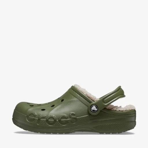 Groene Crocs™ Baya Lined klompen voor heren. Deze gevoerde Crocs zijn ideaal voor de koude wintermaanden! Aan de zijkanten van de Crocs staan grote merklogo’s afgebeeld, en in de ventilatiegaten op de bovenzijde van de klompen kun je Jibbitz™ steken om je schoenen een persoonlijk tintje te geven! De klompen zijn vervaardig doormiddel van de Dual Crocs Comfort™ technologie. Hierdoor kunnen de Baya Lined Crocs jouw voeten ongekende ondersteuning en extra comfort bieden. Gemaakt van synthetisch materiaal, een binnenwerk van textiel en een stevige profielzool.