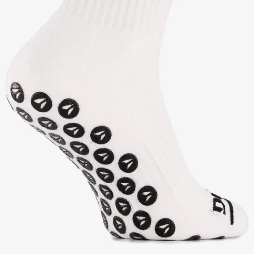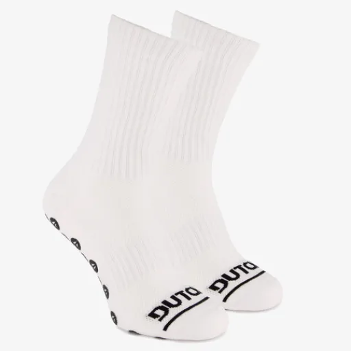 2 paar witte, middelhoge gripsokken van Dutchy. Voorzien van antislip inzetten aan de onderkant en zwarte details. Gemaakt van 98% polyamide en 2% elastaan.