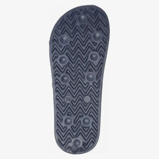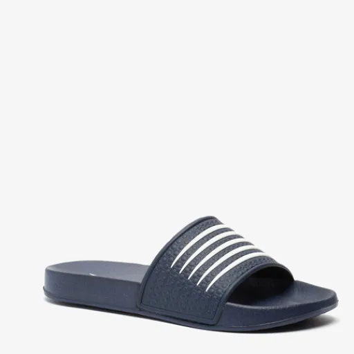 Donkerblauwe badslippers voor dames van Dutchy. De badslippers zijn gemaakt van sneldrogend, synthetisch materiaal en hebben een rubberen profielzool. Voorzien van een comfortabel voetbed en een brede voetband met witte accenten. Dankzij het lichtgewicht materiaal dat snel droogt zijn de badslippers ideaal om mee te nemen op vakantie, naar het zwembad, de sauna of gewoon voor binnenshuis.