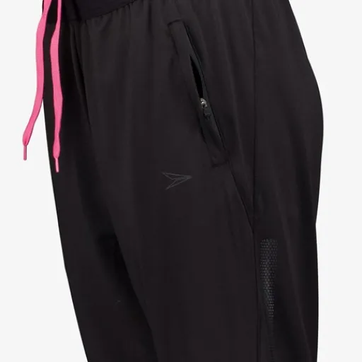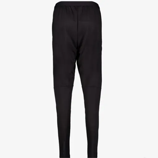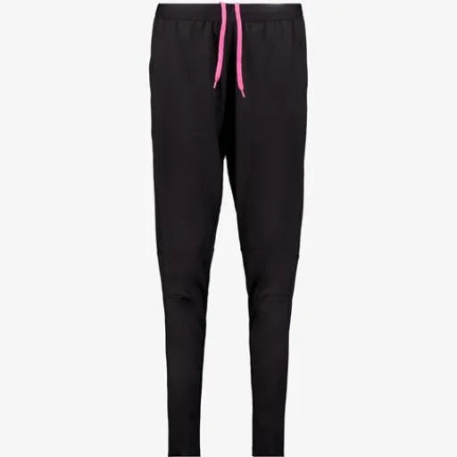 Zwarte trainingsbroek voor dames van Dutchy. Voorzien van elastische tailleband met roze aantrekkoordjes, twee zakken met ritssluiting en ritsen bij de broekspijpen. De broek heeft slim fit pasvorm en is vervaardigd van elastisch materiaal wat voor extra comfort zorgt. Gemaakt van 91% polyester en 9% elastaan.