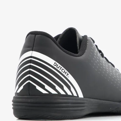Zwarte Dutchy Goal zaalschoenen voor jongens. Het buitenwerk is gemaakt van imitatieleer, het binnenwerk van textiel en de non-marking profielzool van rubber. Voorzien van een vetersluiting voor een goede pasvorm en een comfortabel voetbed van textiel. Deze is uitneembaar zodat je jouw eigen zolen in de schoenen kan dragen.