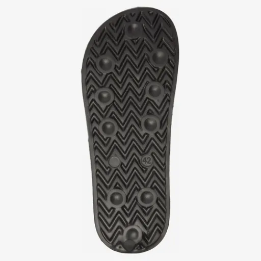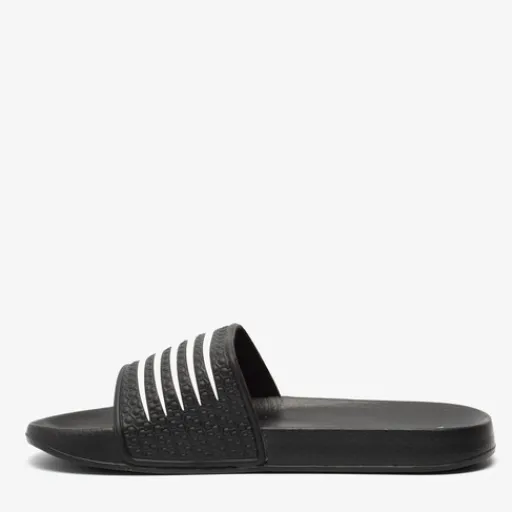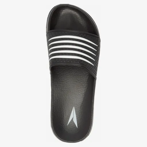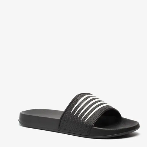 Zwarte badslippers voor heren van Dutchy. De badslippers zijn gemaakt van sneldrogend, synthetisch materiaal en hebben een rubberen profielzool. Voorzien van een comfortabel voetbed en een brede voetband met witte accenten. Dankzij het lichtgewicht materiaal dat snel droogt zijn de badslippers ideaal om mee te nemen op vakantie, naar het zwembad, de sauna of gewoon voor binnenshuis.