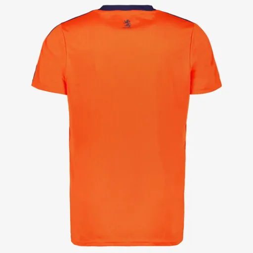 Oranje voetbal T-shirt voor heren van Dutchy. Voorzien van een hoge, ronde hals korte mouwen en mesh inzetten langs de zijkanten die voor ventilatie zorgen. Het shirtje heeft opdrukken van de Nederlandse leeuw en rugnummer 10. Gemaakt van 100% polyester.