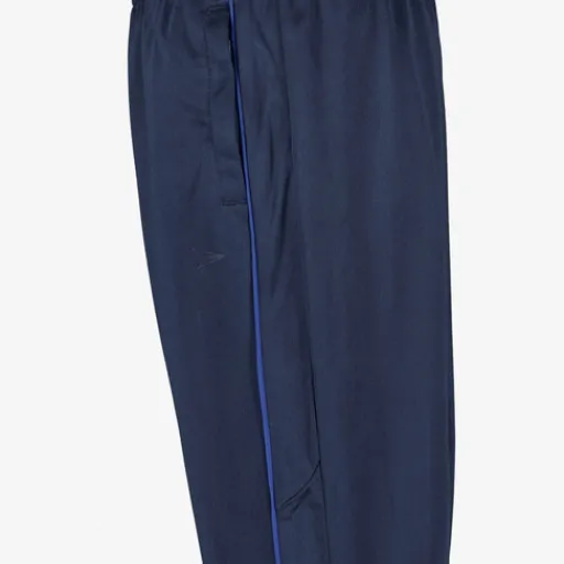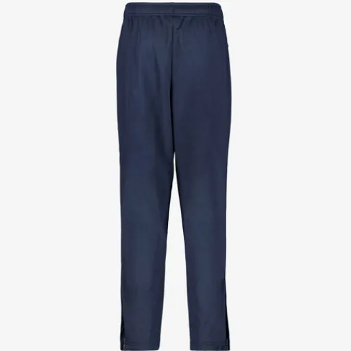 Blauwe trainingsbroek voor jongens van Dutchy. Voorzien van een elastische tailleband met aantrekkoordjes, twee steekzakken met rits en ritsen bij de broekspijpen. De broek heeft een rechte pasvorm en is gemaakt van 100% polyester.