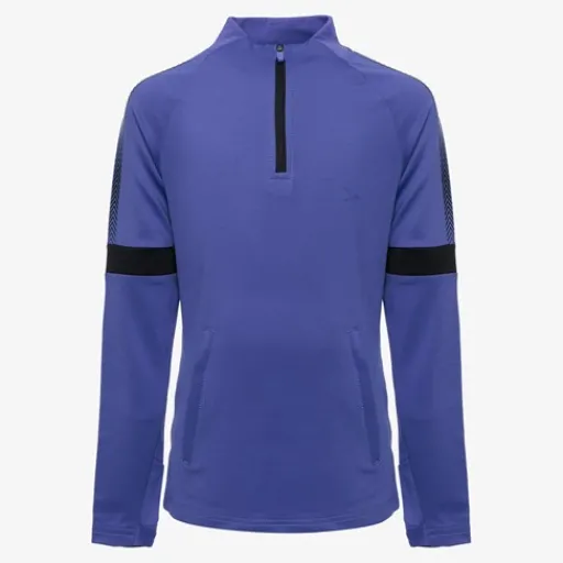 Paarse voetbal pully voor kids uit de Dutchy collectie. Voorzien van lange mouwen en een hoge kraag met halve ritssluiting. De voetbal pully heeft een comfortabele pasvorm met veel bewegingsvrijheid en is vervaardigd van sneldrogend materiaal. Voorzien van zwarte details op de mouwen. Gemaakt van 91% gerecycled polyester en 9% elastaan.