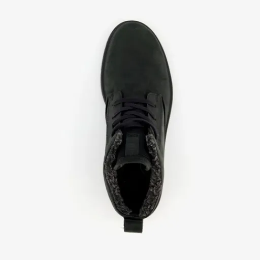 Zwarte veterschoenen voor dames van ECCO. Het buiten- en binnenwerk zijn gemaakt van leer en de stevige zool met profiel van rubber. Voorzien van een vetersluiting en hiellusjes. De schoenen hebben een zachte voering en een comfortabele binnenzool van textiel. Deze is uitneembaar zodat je eventueel jouw eigen zolen in de schoenen kan dragen. Schachthoogte is 10 cm.
