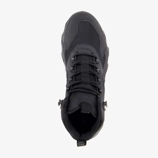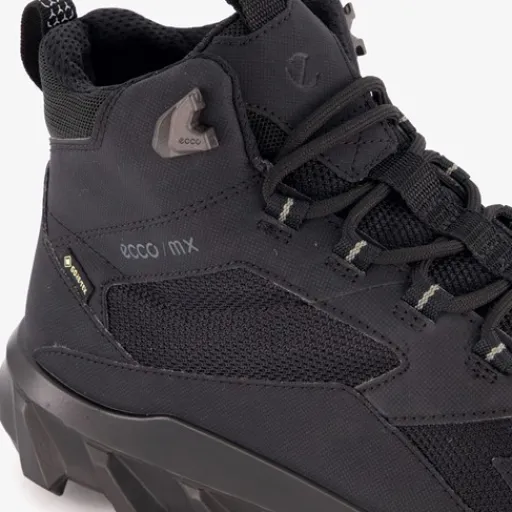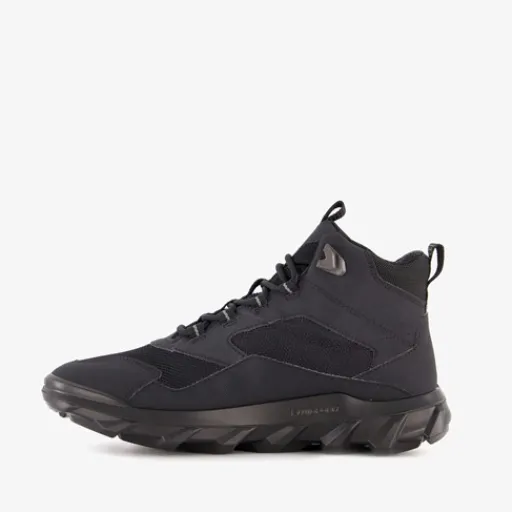 Zwarte, hoge ECCO MX sneakers voor dames. Het buitenwerk is gemaakt doormiddel van GORE-TEX technologie. Dit maakt dat de schoenen ademend en tegelijk waterdicht zijn. Het binnenwerk is van textiel en de leest is vervaardigd met ECCO FLUIDFORMâ„¢ Direct Comfort technologie wat extra ondersteuning en stabiliteit biedt. De stevige buitenzool met diepe groeven is gemaakt van rubber en biedt grip, stabiliteit en steun. De sneakers zijn daarnaast voorzien van een vetersluiting, hiellusjes en een comfortabele binnenzool van textiel. Deze is uitneembaar zodat je eventueel jouw eigen zolen in de schoenen kan dragen.