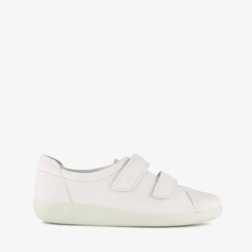 Witte Ecco Soft 2.0 sneakers voor dames. Gemaakt van leer met een binnenwerk van leer en een stevige zool. Voorzien van een klittenbandsluiting voor een makkelijke instap en een optimale pasvorm. Het comfortabele voetbed is gemaakt van textiel. Deze is uitneembaar zodat jij je eigen zolen in deze schoenen kan dragen. De Ecco Soft 2.0 sneakers hebben een rubberen buitenzool die grip en demping biedt.