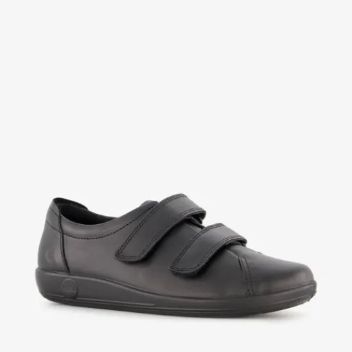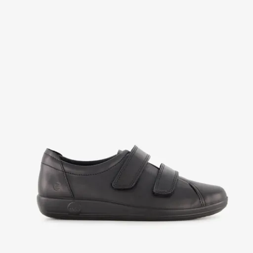 Zwarte ECCO Soft 2.0 sneakers voor dames. Het buiten- en binnenwerk zijn gemaakt van leer en de profielzool is van rubber. Voorzien van twee klittenbanden en een comfortabele binnenzool van textiel. Deze is uitneembaar zodat je eventueel jouw eigen zolen in de schoenen kan dragen.
