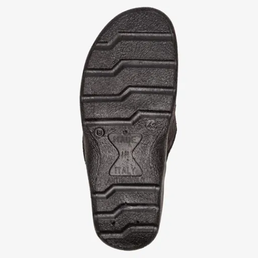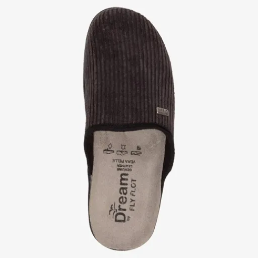 Zwarte instappers voor heren uit de Fly Flot collectie. Voorzien van een bovenwerk van geribd textiel, een binnenwerk van textiel en een stevige profielzool. De pantoffels hebben een comfortabel voetbed van zacht leer en een harde buitenzool die grip en demping biedt.ΒΆΒΆ