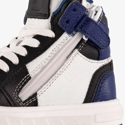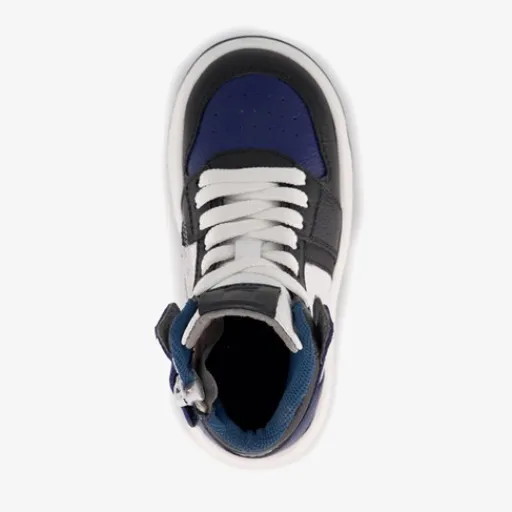Hoge, blauwe sneakers met zwarte accenten voor jongens van Groot. Het buiten- en binnenwerk zijn gemaakt van leer en de stevige zool met profiel van rubber. Voorzien van een veter- en ritssluiting met klittenband voor een optimale pasvorm. Deze gave sneakers hebben een comfortabele binnenzool van leer. Het voetbed is uitneembaar zodat je eventueel jouw eigen zolen in de schoenen kan dragen.