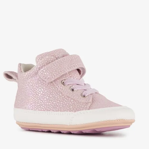 Lichtpaarse/lila babyschoenen voor meisjes van Groot. Het buiten- en binnenwerk zijn gemaakt van leer en de stevige profielzool is van rubber. Voorzien van elastische veters en een klittenbandsluiting voor een goede pasvorm en hiellusjes die het makkelijke maken om de schoenen bij je kindje aan te trekken. De schoentjes hebben een goudkleurige all over design en een comfortabele binnenzool van leer. Deze is uitneembaar.