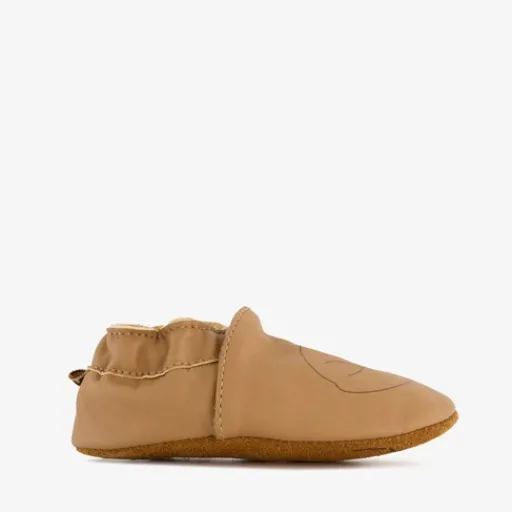 Cognackleurige babyschoenen met een opdruk van een slapend vosje. Gemaakt van leer met een flexibele, soepel buitenzool. De schoentjes hebben een zachte voering en elastische inzetten bij de instap. Hierdoor trek jij de schoenen makkelijk aan bij je kind. Het comfortabel voetbed van textiel is niet uitneembaar.