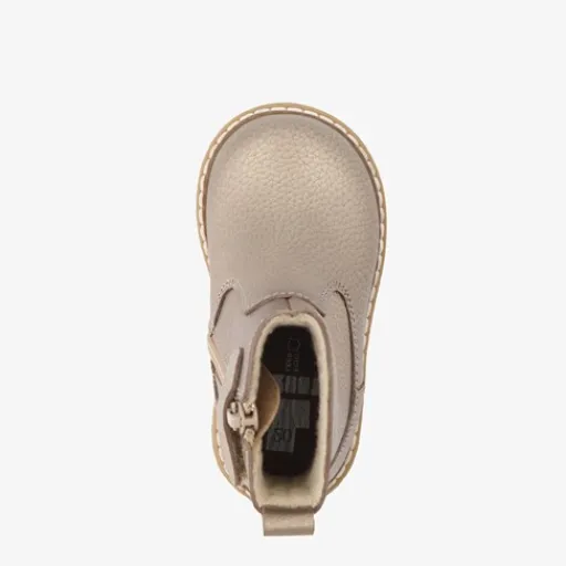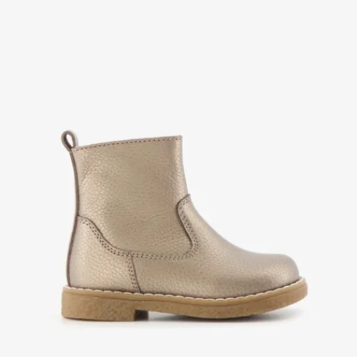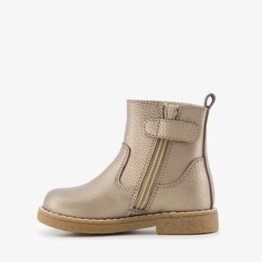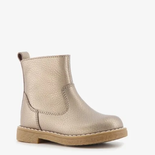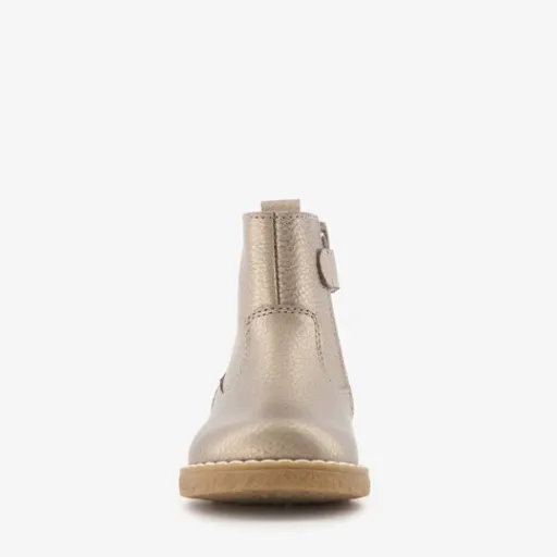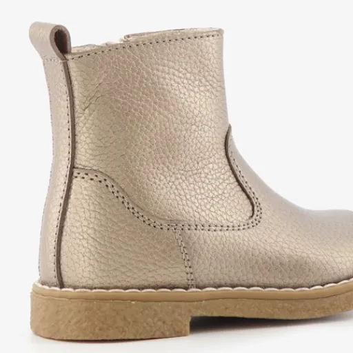 Goudkleurige enkellaarsjes voor meisjes van Groot. Gemaakt van leer, een binnenwerk van textiel en een rubberen zool. De enkellaarzen hebben een ritssluiting met klittenbandje aan de binnenzijde en een aantreklusje op de hiel. Het comfortabele voetbed is gemaakt van leer. Deze is niet uitneembaar.