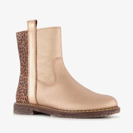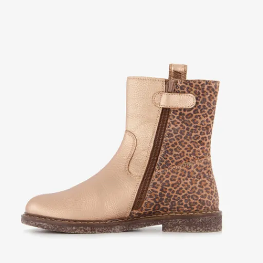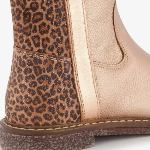 Groot Leren meisjes enkellaarsjes met panterprint details goud Best