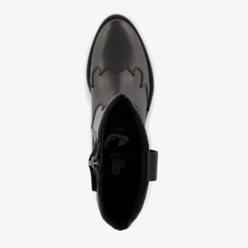 Zwarte western laarzen voor meisjes van Groot. Gemaakt van leer, een binnenwerk van textiel en een rubberen zool. De laarzen hebben een ritssluiting aan de binnenzijde en een comfortabel voetbed van leer. Deze is uitneembaar. Op het bovenwerk zijn zilverkleurige metallic details aangebracht. De western laarzen hebben een schachthoogte van 20 cm en een lage hak van circa 2,5 cm.