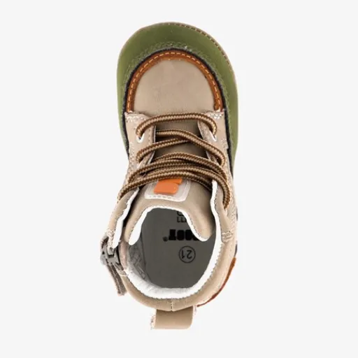 Grijze babyschoenen voor jongens van Groot. Gemaakt van suede met een binnenwerk van leer en een flexibele profielzool van rubber. Voorzien van elastische veters en een klittenbandsluiting voor een goede pasvorm. Deze leuke babyschoentjes hebben hiellusjes waardoor jij de schoenen makkelijk aantrekt bij je kindje. Het comfortabele voetbed van leer is uitneembaar. De babyschoenen hebben groene accenten en een bruin teddy detail op de hiel.¶¶