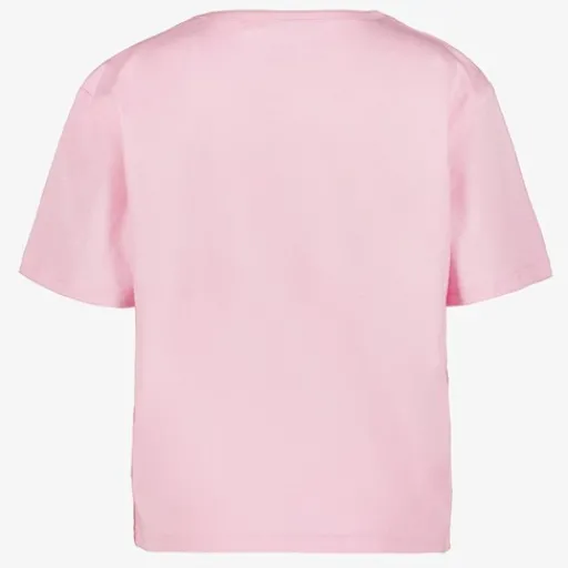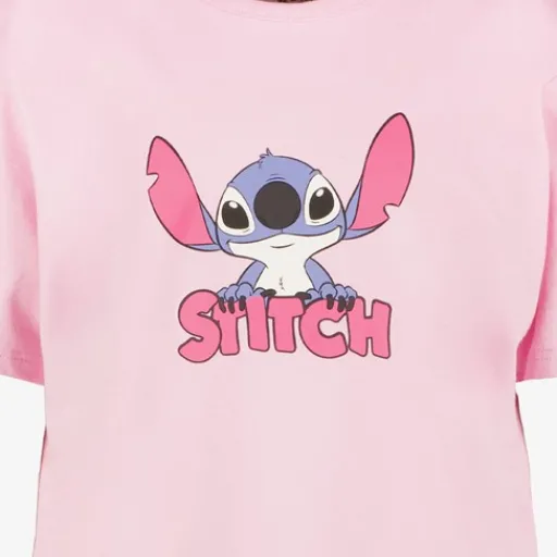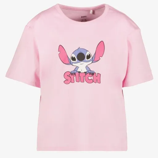 Roze Lilo & Stitch T-shirt voor meisjes. Het shirtje heeft een vrolijke opdruk van Stitch aan de voorkant, een ronde hals en korte mouwen. Gemaakt van 100% katoen.