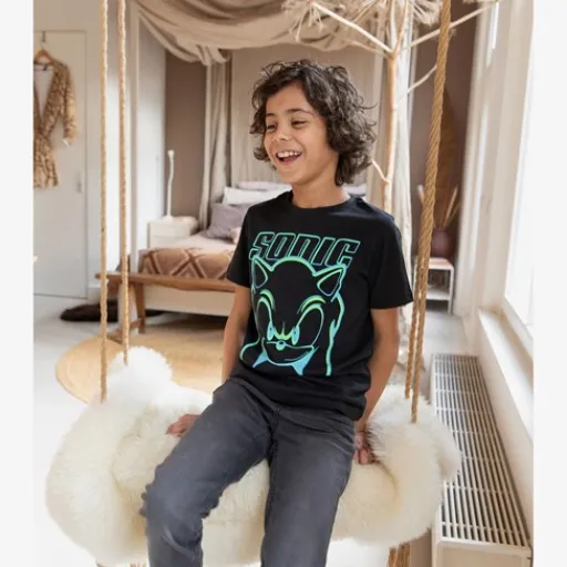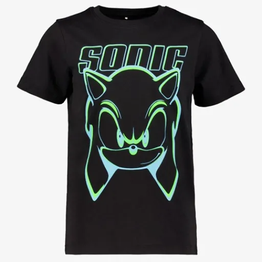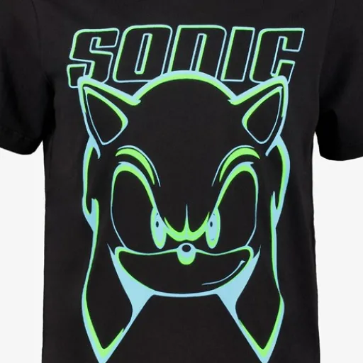 Zwarte jongens T-shirt met een stoere opdruk van Sonic. Voorzien van een ronde hals en korte mouwen. Gemaakt van 100% katoen.