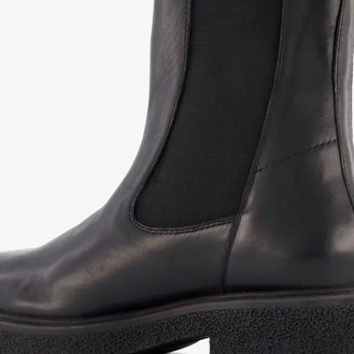 Zwarte Chelsea boots voor dames van Harper. Het buitenwerk is gemaakt van leer, het binnenwerk van textiel en de stevige zool met profiel van rubber. Voorzien van elastische inzetten aan de binnen- en buitenkant en hiellusjes voor een makkelijke instap. Het comfortabele voetbed van leer is niet uitneembaar. De boots hebben een hakhoogte van circa 2 cm en een schachthoogte van 16 cm.