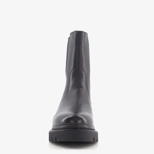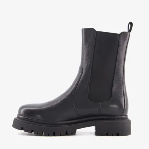 Zwarte Chelsea boots voor dames uit de Harper collectie. Gemaakt van leer met een binnenwerk van textiel en stevige profielzool van rubber. Voorzien van elastische inzetten aan de binnen- en buitenkant en hiellusjes voor een makkelijke instap. Het comfortabel voetbed van deze gave boots is gemaakt van textiel en is niet uitneembaar. Schachthoogte is 19 cm en hakhoogte circa 2 cm.