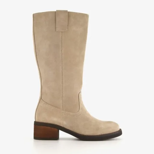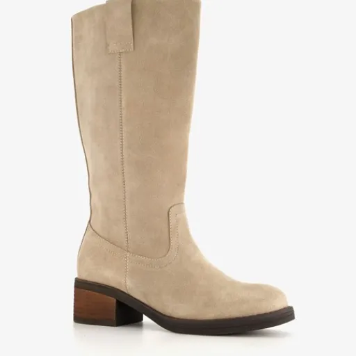 Hoge, beige laarzen voor dames van Harper. Het buitenwerk is gemaakt van suede, het binnenwerk van textiel en de bruine buitenzool van rubber. Voorzien van een ritssluiting aan de binnenzijde en een aantreklus aan de buitenzijde. Deze mooie dameslaarzen hebben een blokhak van circa 4 cm en een schachthoogte van 31 cm. Het comfortabele voetbed van leer is niet uitneembaar.