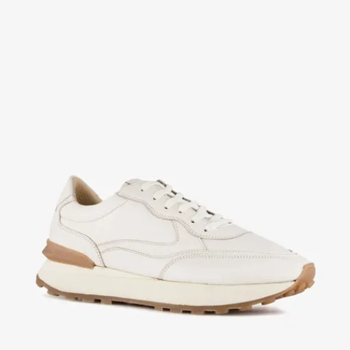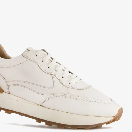 Witte sneakers voor dames uit de Harper collectie. Het buiten- en binnenwerk zijn gemaakt van leer en de stevige zool met profiel is van rubber. De sneakers hebben bruine details en een comfortabele binnenzool van leer. Deze is niet uitneembaar.