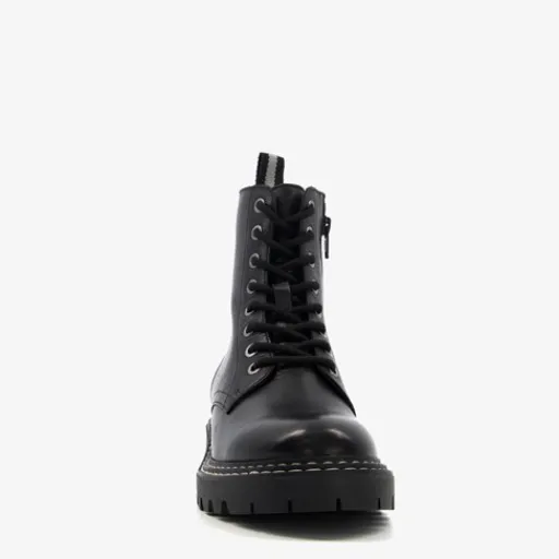 Zwarte veterboots voor dames van Harper. Gemaakt van leer, een binnenwerk van textiel en een rubberen zool. De boots hebben een vetersluiting en een schuine rits aan de binnenzijde. Het vaste voetbed is gemaakt van textiel. De veterboots hebben een schachthoogte van 14 cm en een hak van 2 cm.