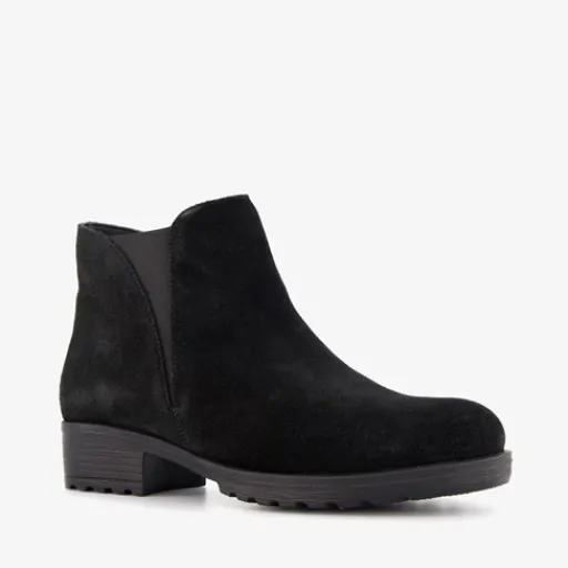 Harper Suede dames enkellaarsjes lage hak zwart New
