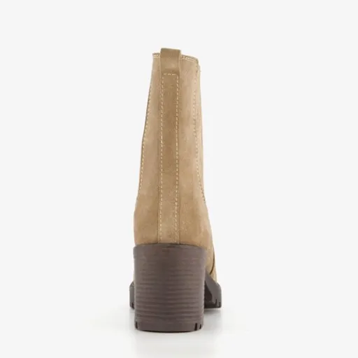 Harper Suede dames enkellaarsjes met hak beige Outlet