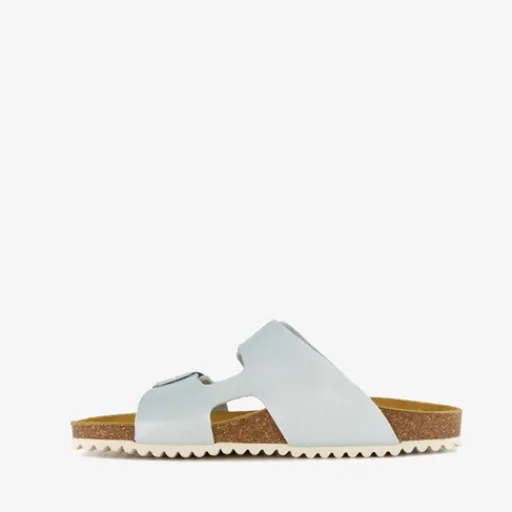 Lichtblauwe bio slippers van Hush Puppies. Gemaakt van imitatieleer en voorzien van een rubberen zool. De slippers hebben een wreefband met twee gespen voor een optimale pasvorm. Het zachte voetbed is gemaakt van leer en bevat memory foam voor extra comfort.