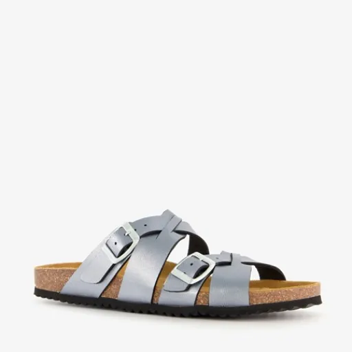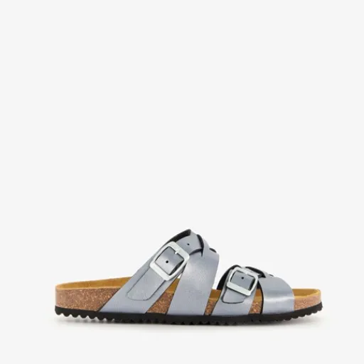 Zilvergrijze bio slippers van Hush Puppies. Gemaakt van imitatieleer en voorzien van een rubberen zool. De slippers hebben een wreefband met twee gespen voor een optimale pasvorm. Het zachte voetbed is gemaakt van leer en bevat memory foam voor extra comfort.